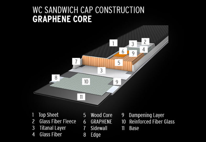 The Graphene WC Sandwich Cap construction is developed with the most sophisticated material known to man. It has a balanced mix of light Graphene and extra titanal layers and combines the most extreme agility with extreme responsiveness for ultimate performance.