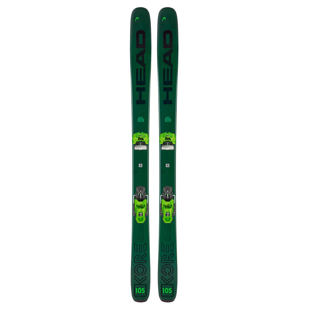 As the ultimate lightweight freeride ski, the KORE 105 has versatility for all-mountain adventures. The new KORE construction reduces weight without sacrificing performance, thanks to a combination of Graphene, Karuba wood, and multilayers of carbon. The sandwich sidewall construction adds responsiveness on hardpack snow and the tip and tail rocker provide flotation for deep powder days. HEAD's new top sheet shape adds durability for hard-charging freeride skiers.