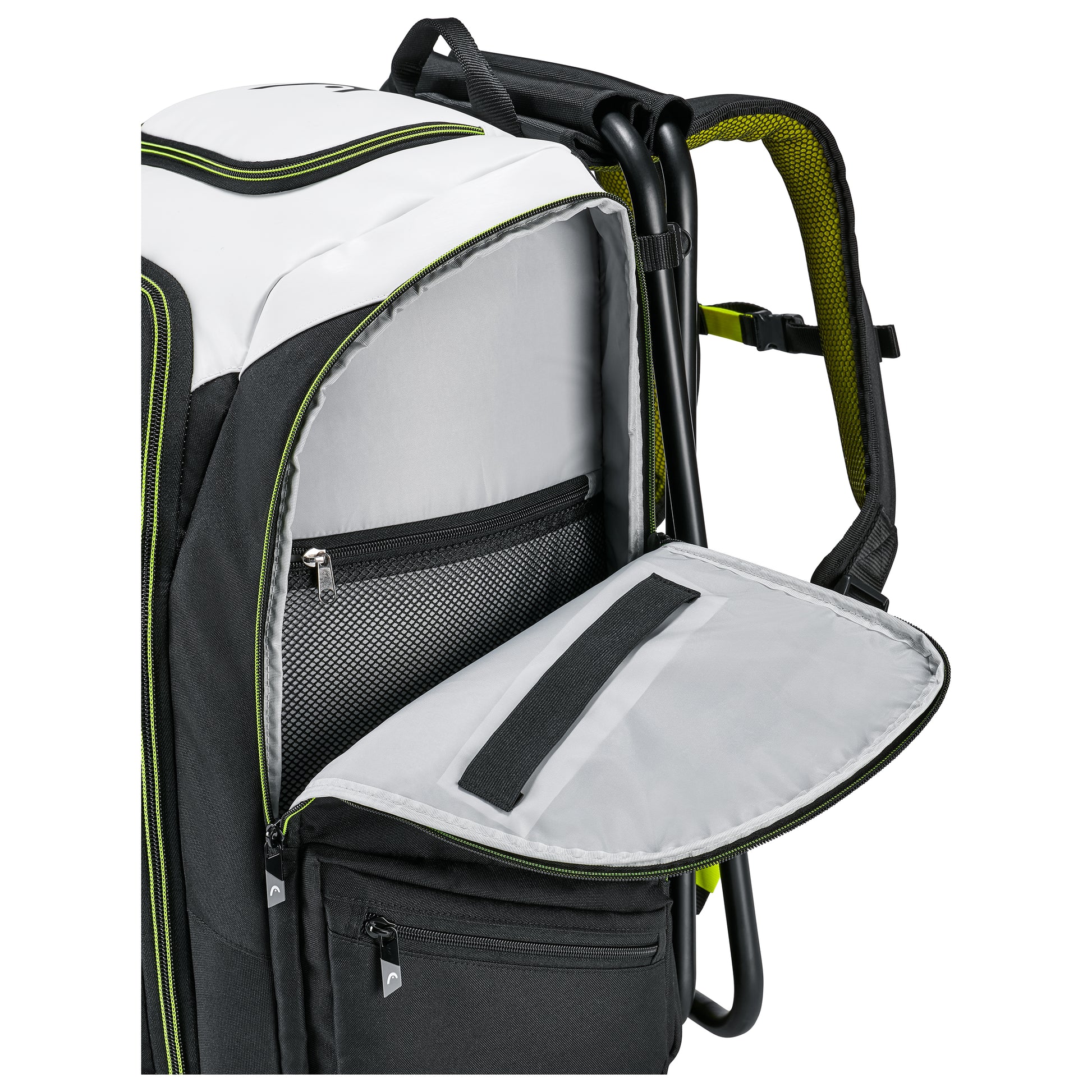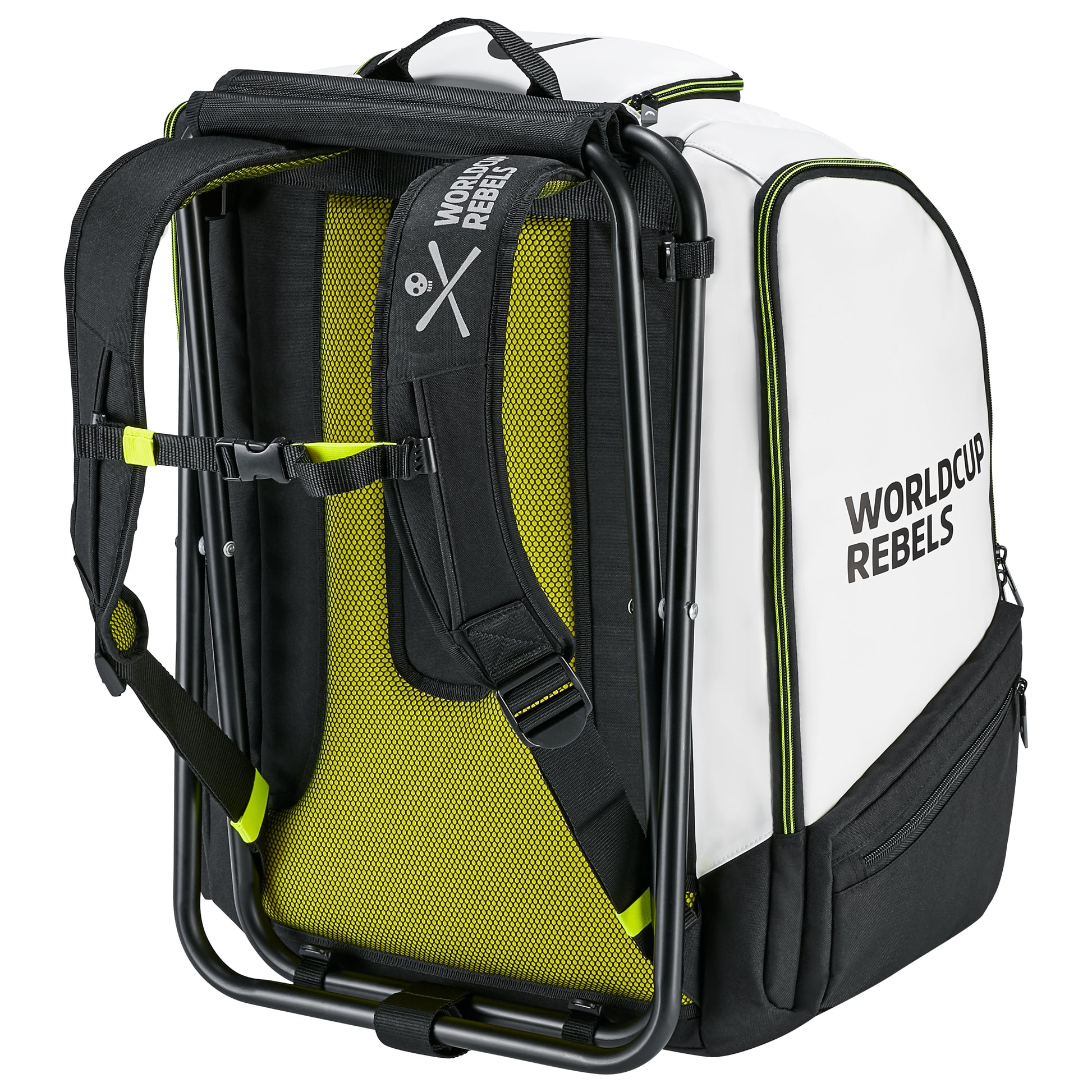 Race coaches need to be prepared at all times, so HEAD designers created the Rebels Coaches Backpack to suit their needs. Not only does the backpack provide ample room inside but small, internal pockets make space for valuables and accessories. Three strategically-placed exterior pockets, designed to anticipate every need on the hill, hold drill bits and screwdrivers. Durable outer material protects the Backpack from the elements, while sturdy straps and reliable zippers stand up to everyday use. The Coaches Backpack bonus? A foldable chair for long days on the course.