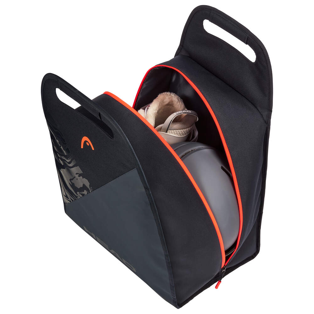 With the Women's Bootbag you carry your boots and your helmet like they are in a handbag. Its unique shape is not only fashionable it sets a design statement. In addition it is aligned to our JOY series. The cushioned handle gives you carrying comfort. The durable outer material is made for frequent usage.