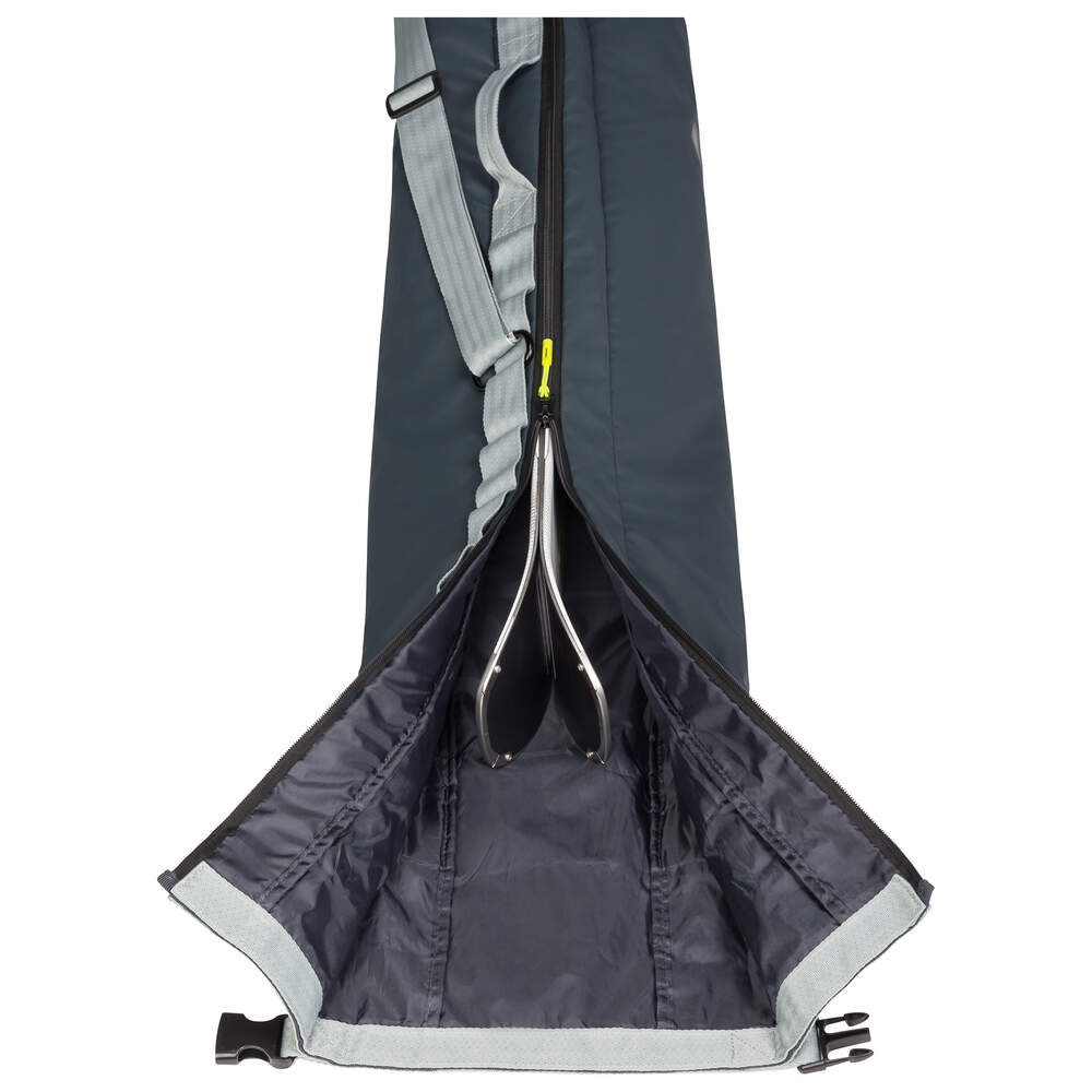 The Women's Single Skibag was designed for ease of travel. Three well-placed handles and a padded, adjustable shoulder strap make it easier for women to find the balance point when carrying skis. The full zip provides easy access to skis and poles, while the outer material provides durability for the long miles up to the mountains.